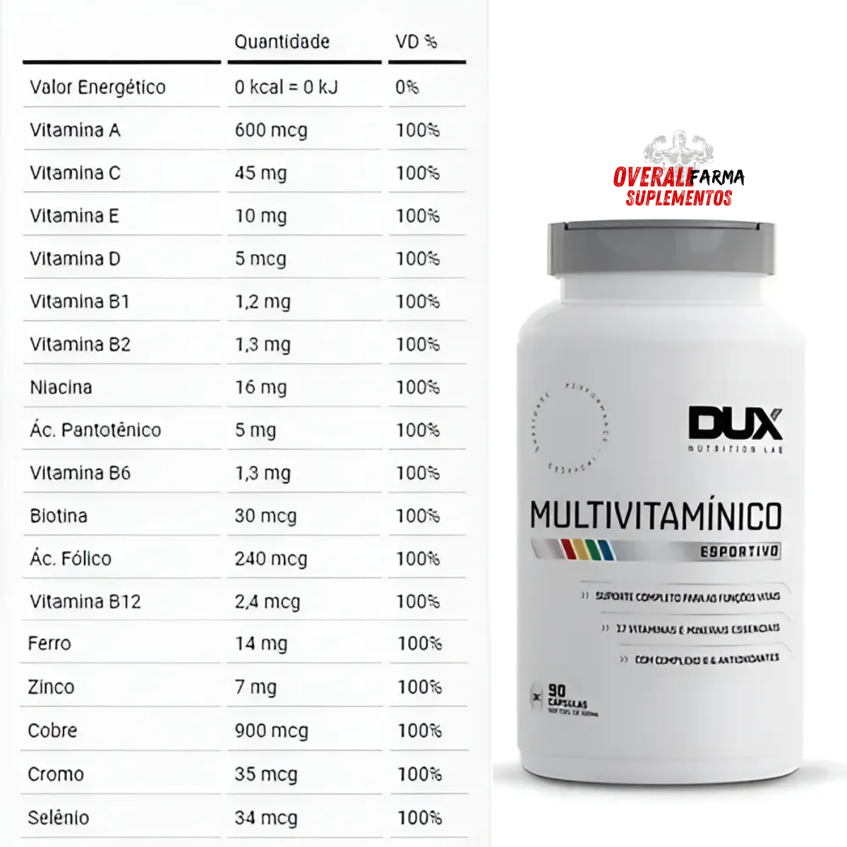 Os suplementos alimentares, como o Multivitamínico DUX, têm como objetivo aportar nutrientes à alimentação de pessoas saudáveis, e os efeitos do consumo de suplementos podem variar individualmente. Por isso, recomendamos consultar um médico e/ou nutricionista para uma orientação de consumo personalizada antes do início e durante o uso de qualquer suplemento.